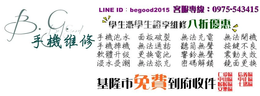 基隆手機維修-仁愛區信義區中山區中正區暖暖區七堵區安樂區